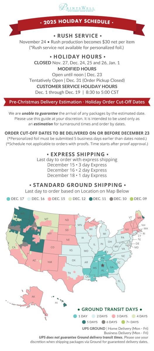 Our Production Schedule is an approximation and is IN ADDITION to shipping time.