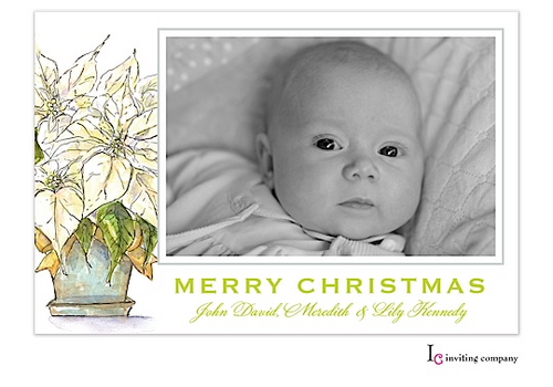 Light Poinsettia Holiday Flat Photo Card
